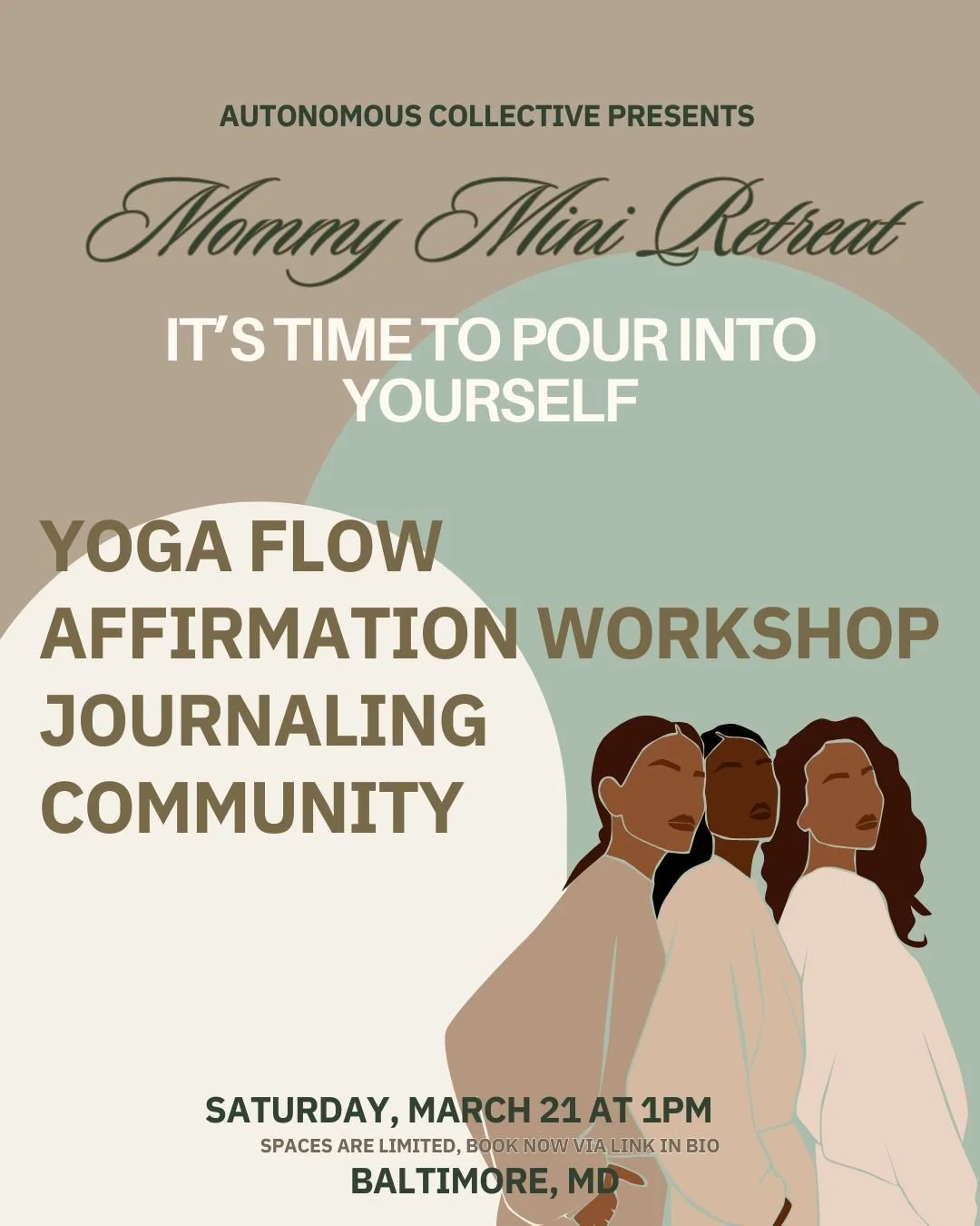 At this event you will partake in a few activities meant to feed you mind, body and soul. There will be yoga (please bring a mat), an affirmation workshop, journaling craft and prompts AND great conversation with other mothers.